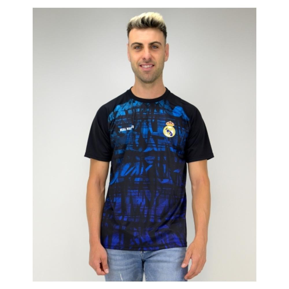 Látványos, sötétkék és fekete színvilággal tervezett Real Madrid edzőmez - kifejezetten sportoláshoz. Könnyű, jól lélegző polyester alapanyag, dinamikus mintázat, és természetesen a Real Madrid neve és címere, mint díszítés a mellkason. Ajánljuk bármilyen sporthoz, de közös szurkolásokhoz is. Nem maradsz benne észrevétlen :)